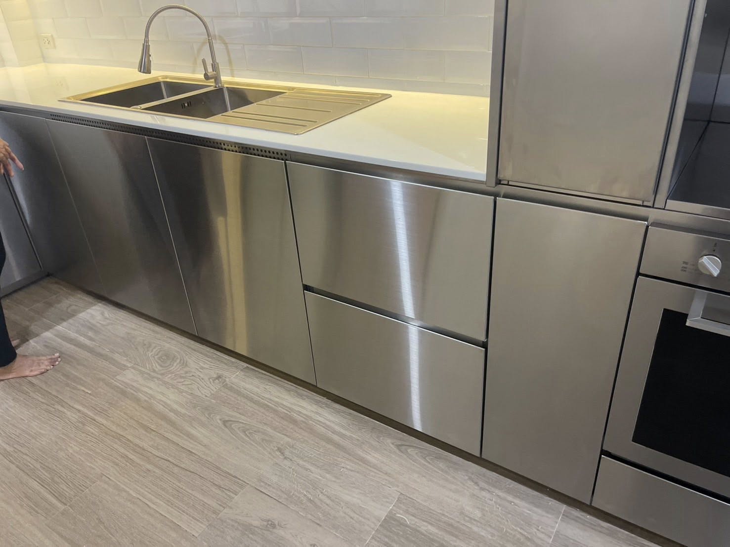จุดเด่น: เป็นวัสดุที่ถูกสุขลักษณะที่สุด (Hygienic) ทำความสะอาดง่ายมาก ไม่ซึมน้ำ ไม่ติดไฟ เป็นทางเลือกอันดับ 1 ของครัวระดับมืออาชีพ